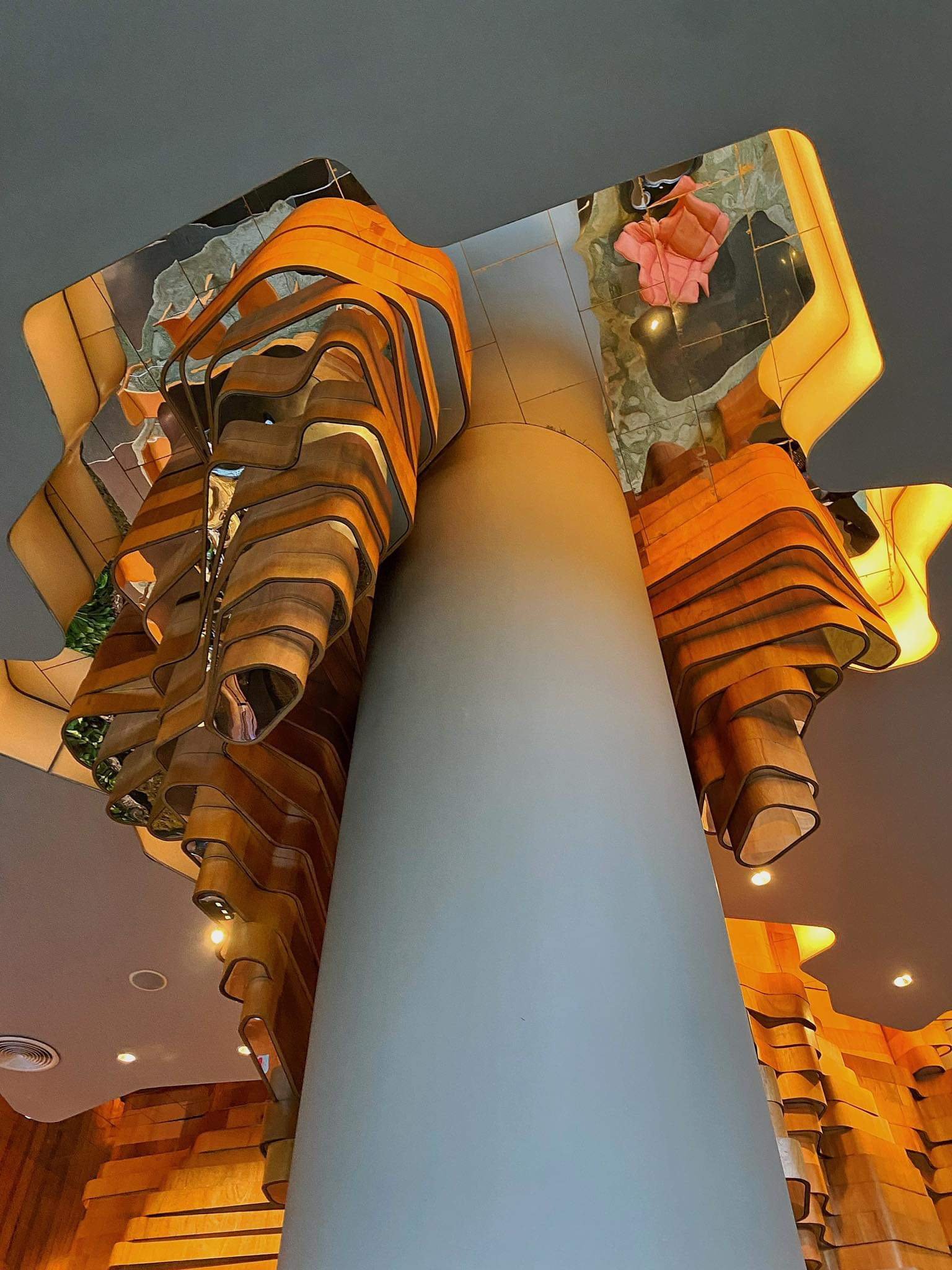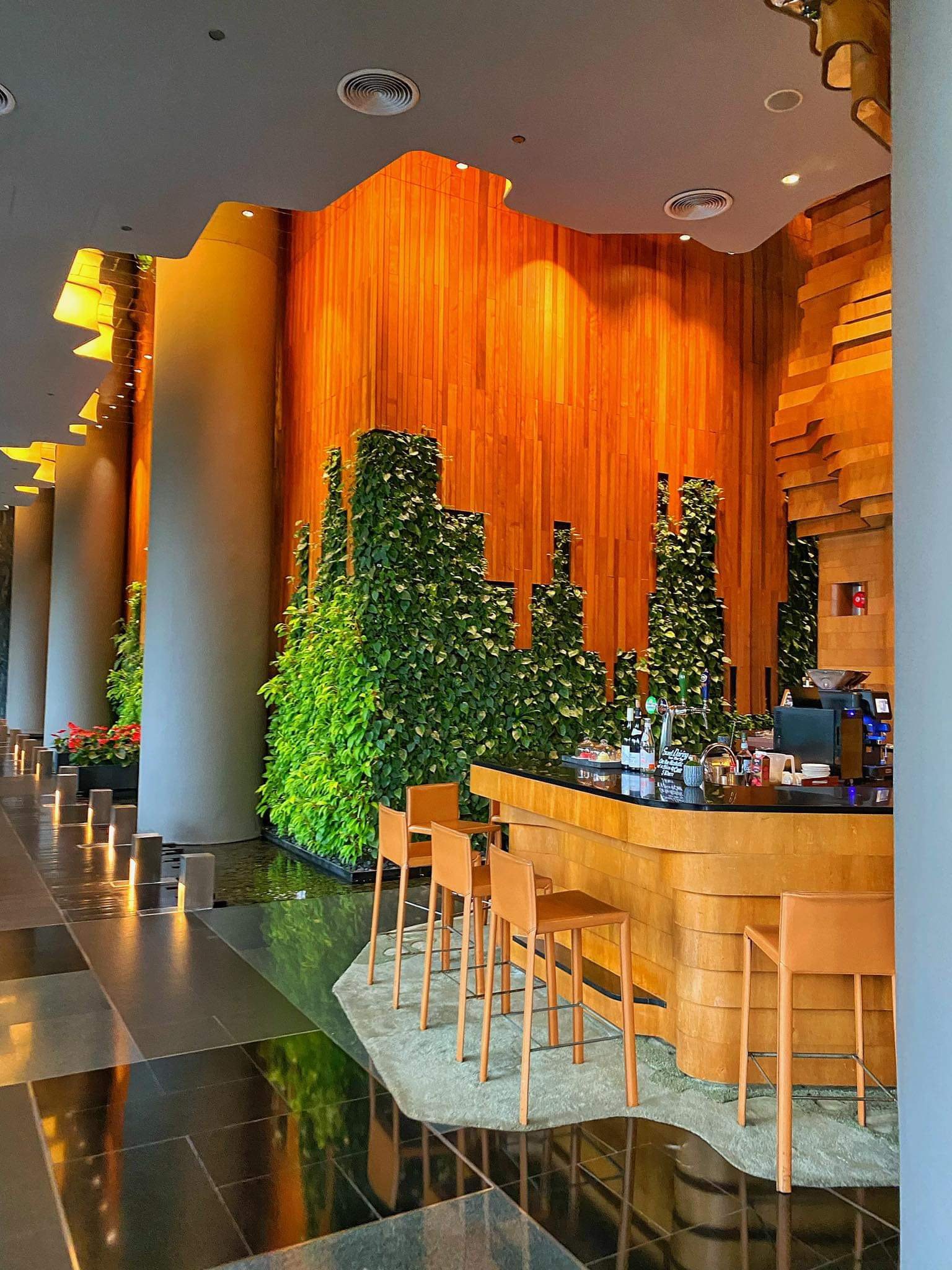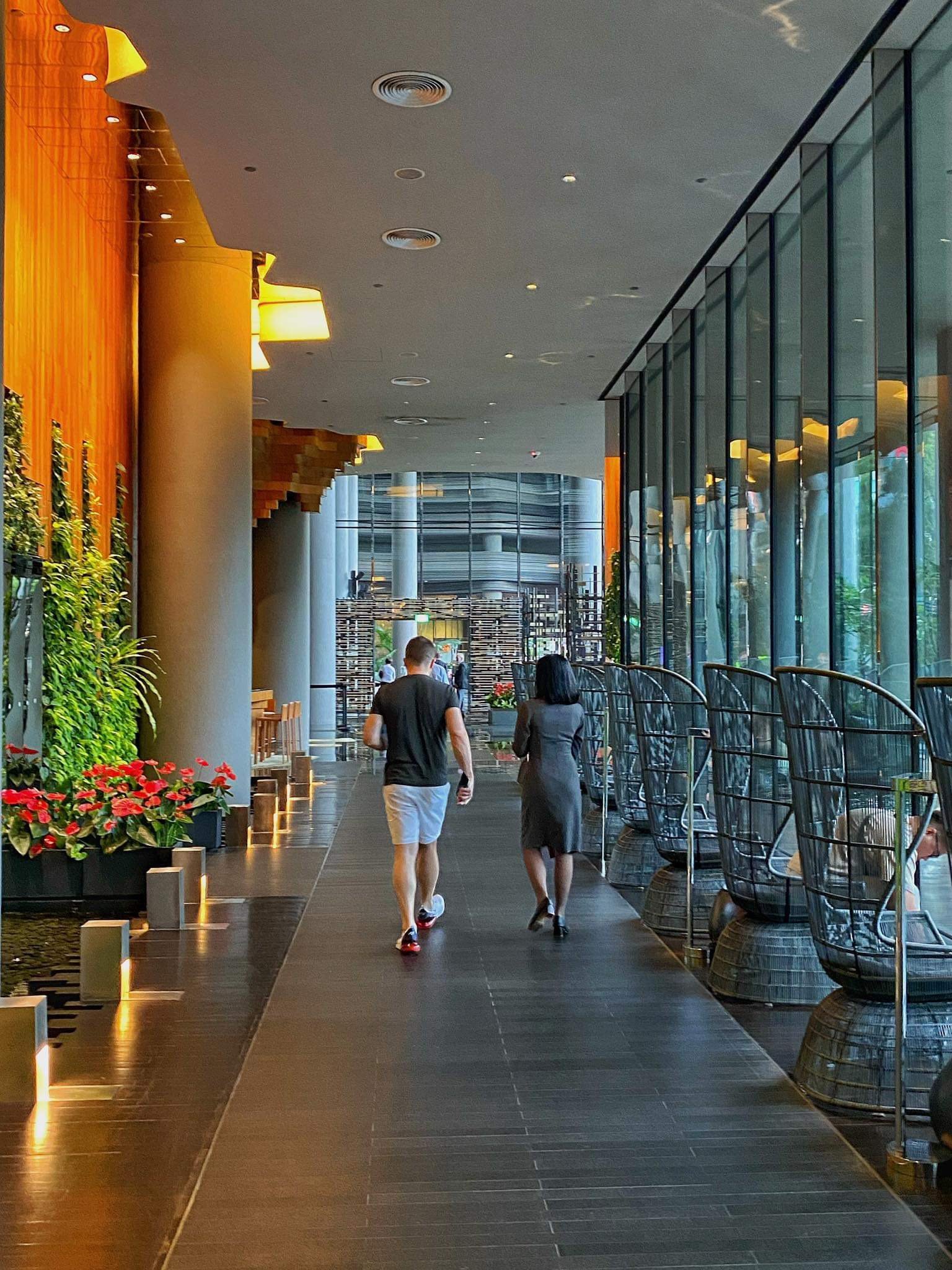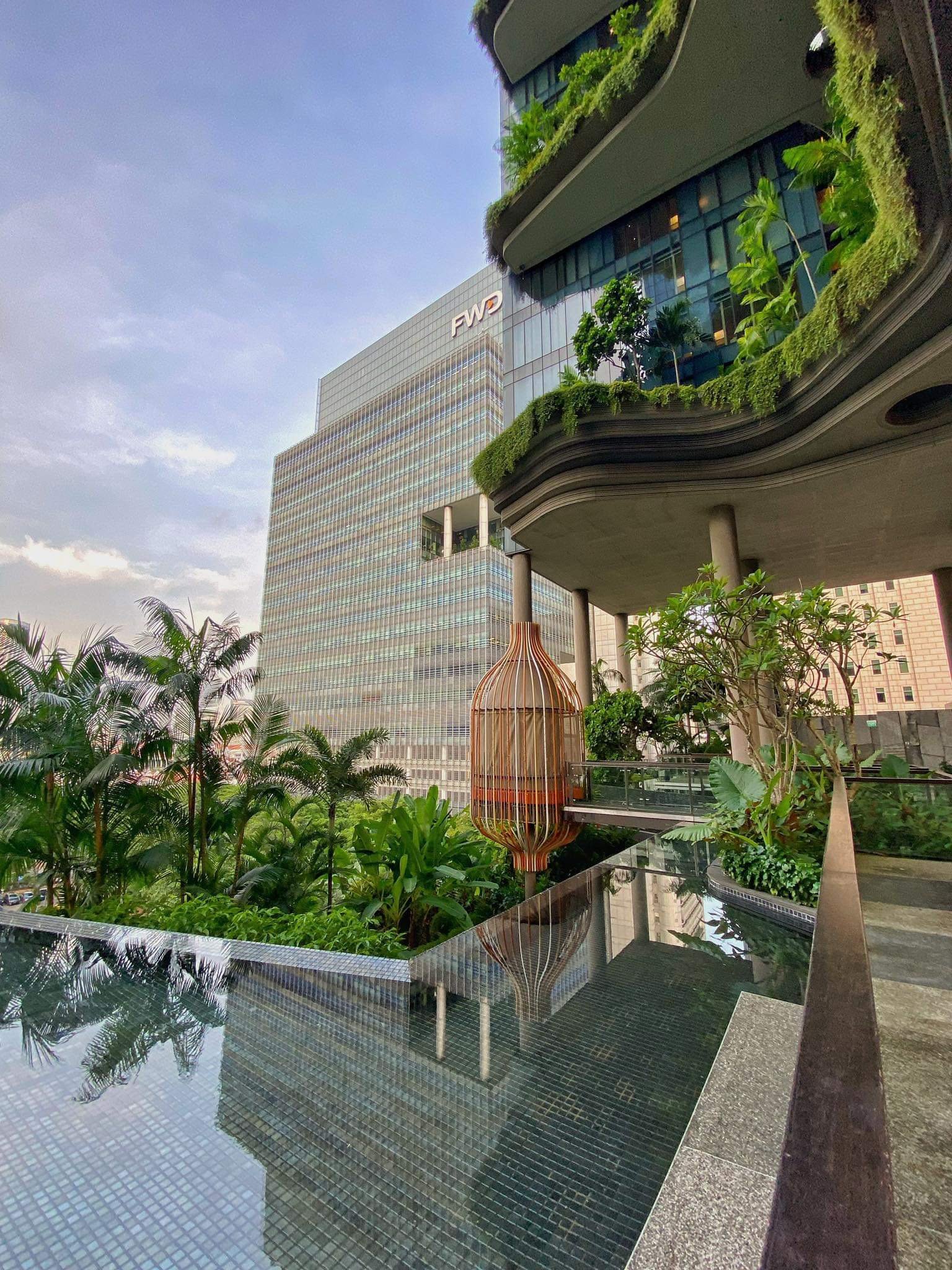 Upon approaching the Parkroyal Collection Pickering, the first thing that captivated our eyes is the lush, verdant façade. The hotel defies the conventional notion of a concrete jungle, as tiered gardens cascade down its exterior, creating a visual spectacle. This distinctive design not only enhances the aesthetic appeal but also serves a vital ecological purpose. The sky gardens are not just for show; they contribute significantly to the hotel’s sustainability. WOHA’s vision for the Parkroyal Collection Pickering was to create a green sanctuary within the urban jungle, and they achieved this by incorporating environmentally friendly features. The lush vegetation helps to absorb carbon dioxide, reduce energy consumption, and promote biodiversity, all while providing a serene and refreshing atmosphere for guests.