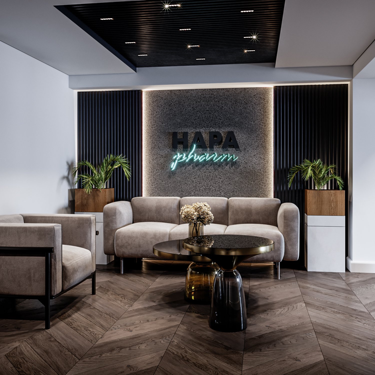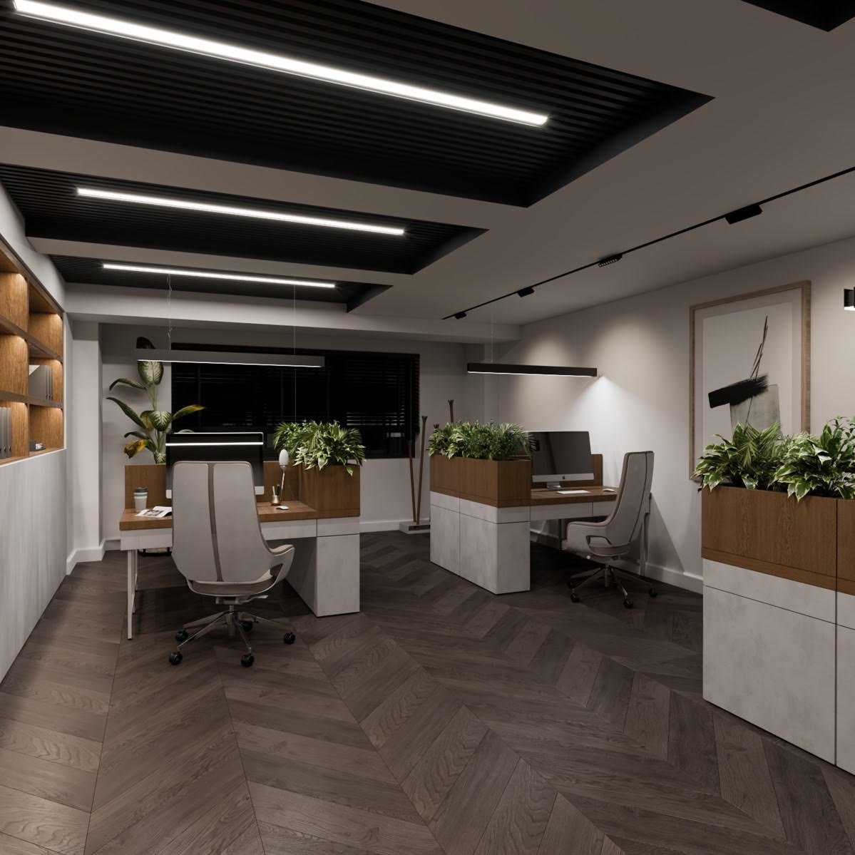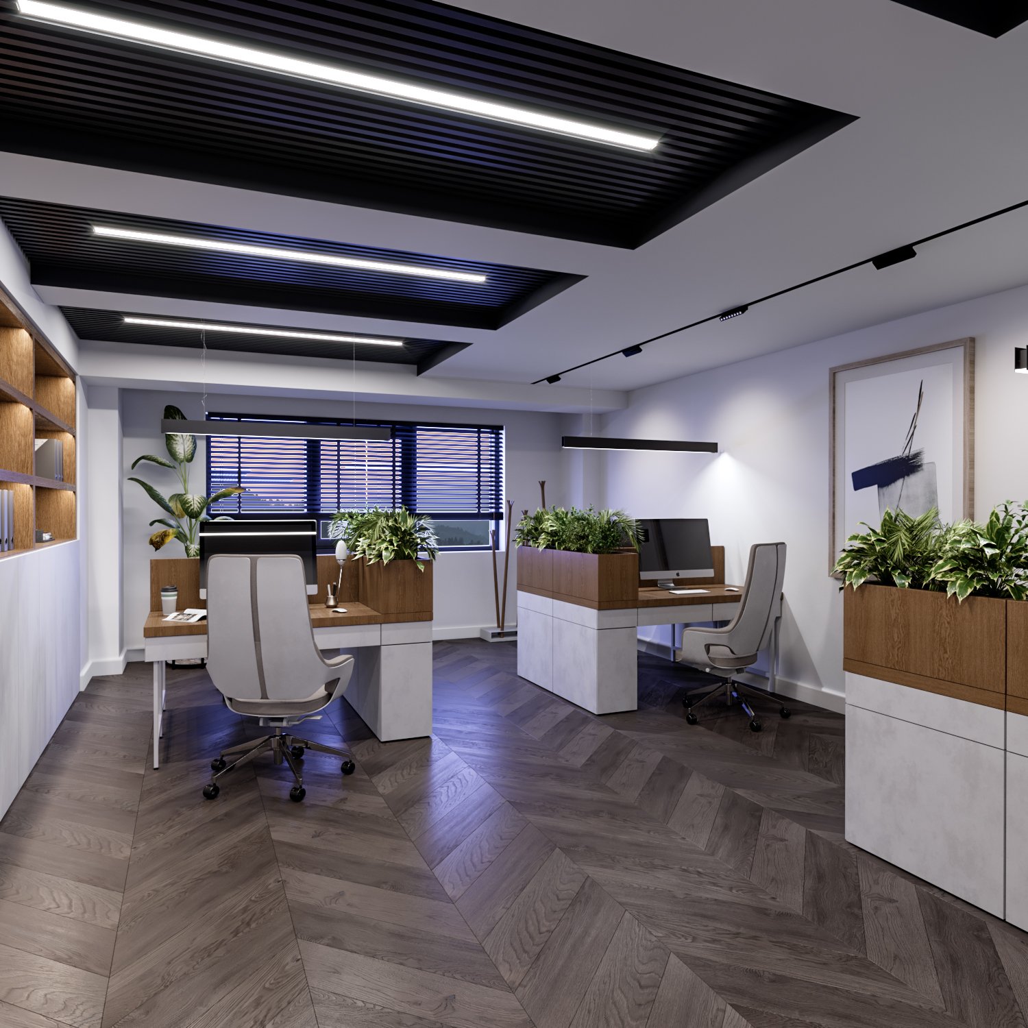 In an office space of about 500 m2, we were given the task of creating a project for the interior decoration of the working premises of a pharmaceutical company in Skopje, which will include two conference rooms, three offices for managers, seven separate offices for each work department in the company, kitchen, entrance hall and additional contents. Although one style permeates each of the rooms, each of the offices has a special feature that makes it stand out, and special attention is paid to the management offices, which reflect the style of each of the managers.