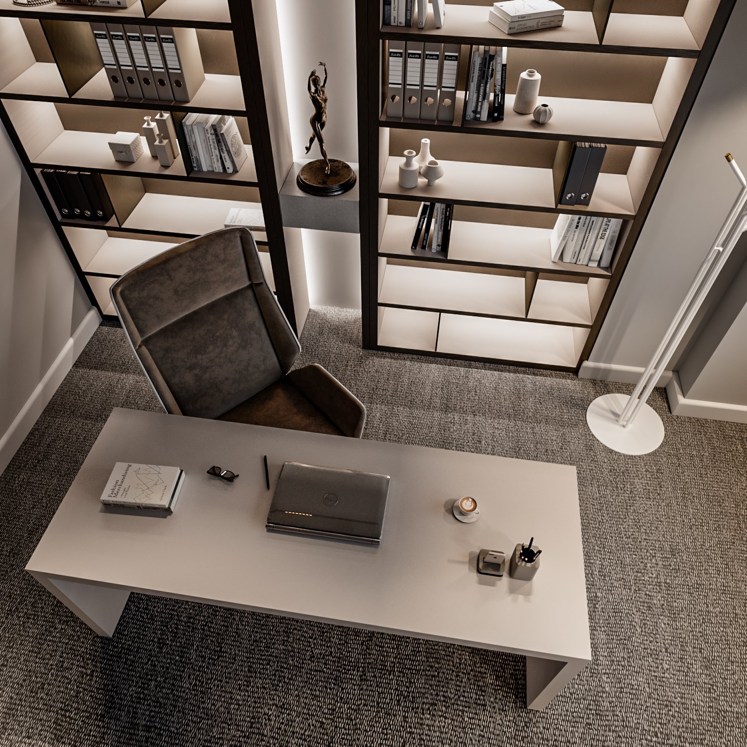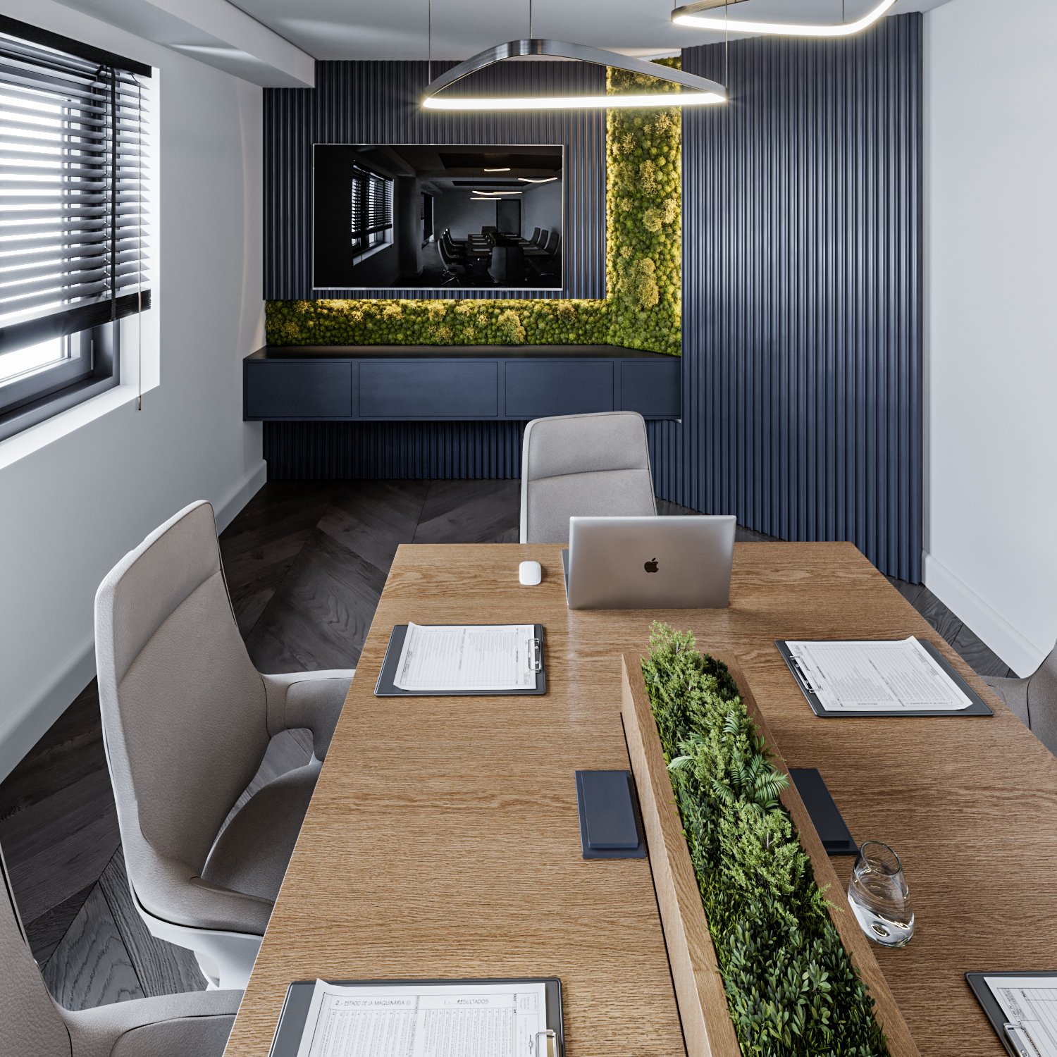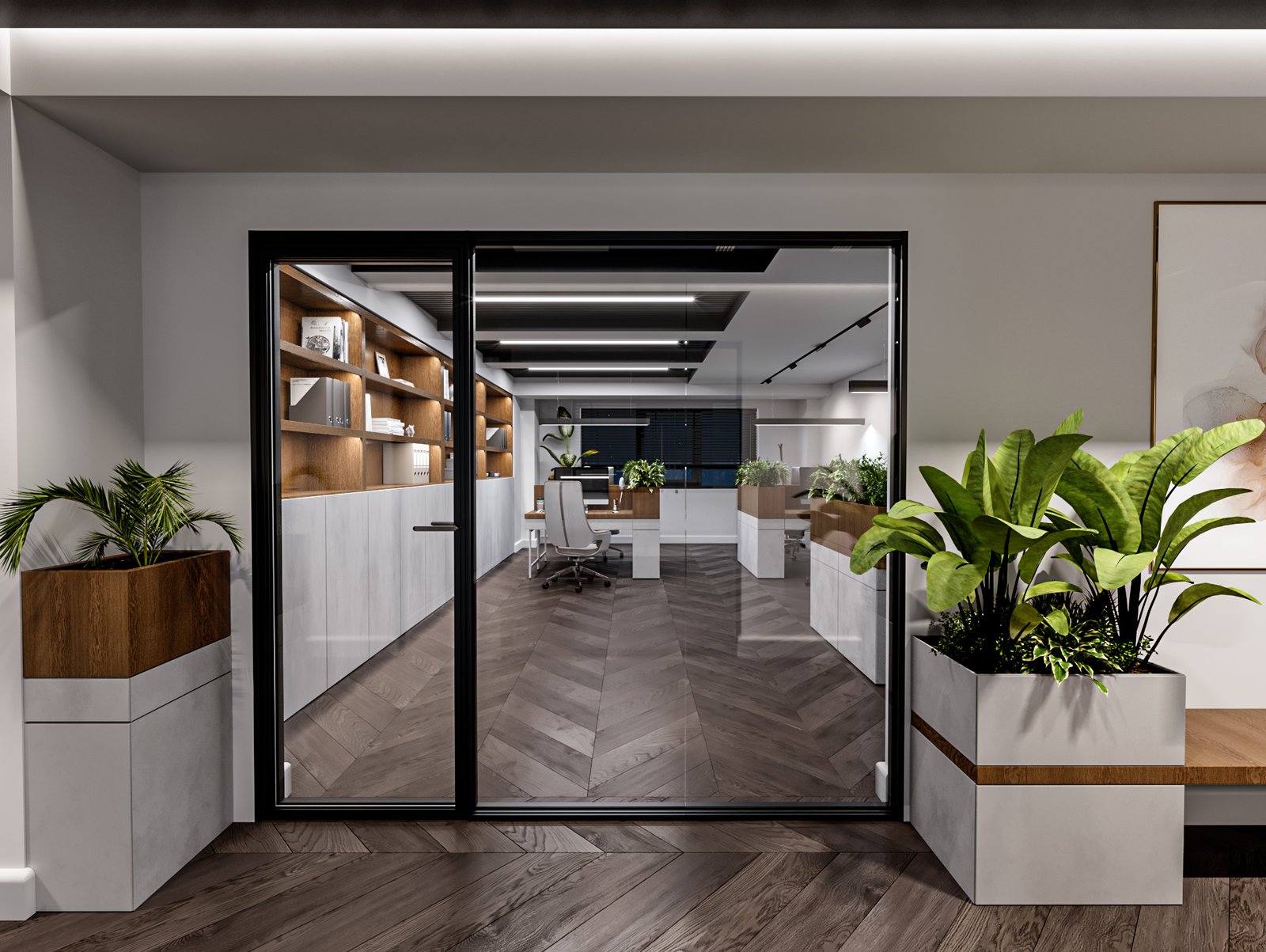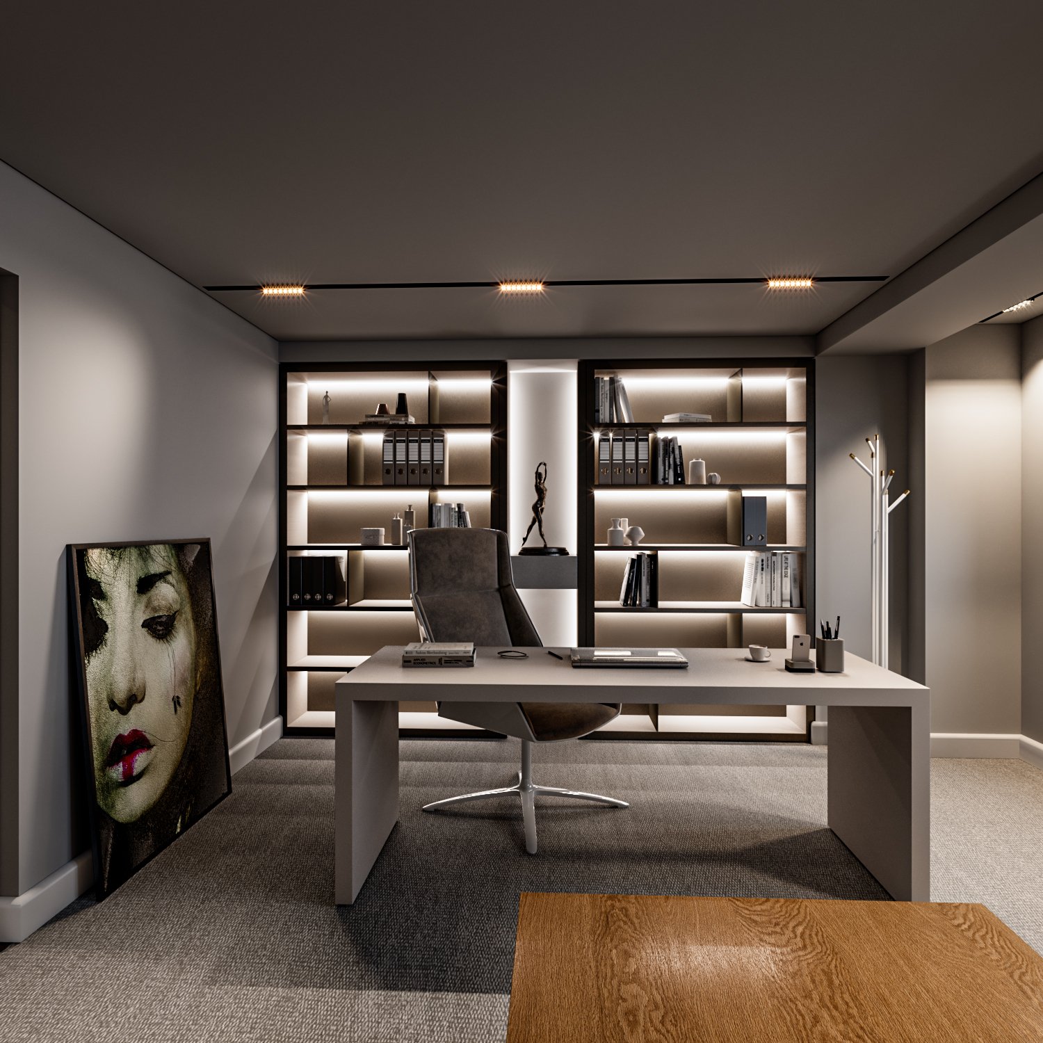 In an office space of about 500 m2, we were given the task of creating a project for the interior decoration of the working premises of a pharmaceutical company in Skopje, which will include two conference rooms, three offices for managers, seven separate offices for each work department in the company, kitchen, entrance hall and additional contents. Although one style permeates each of the rooms, each of the offices has a special feature that makes it stand out, and special attention is paid to the management offices, which reflect the style of each of the managers.