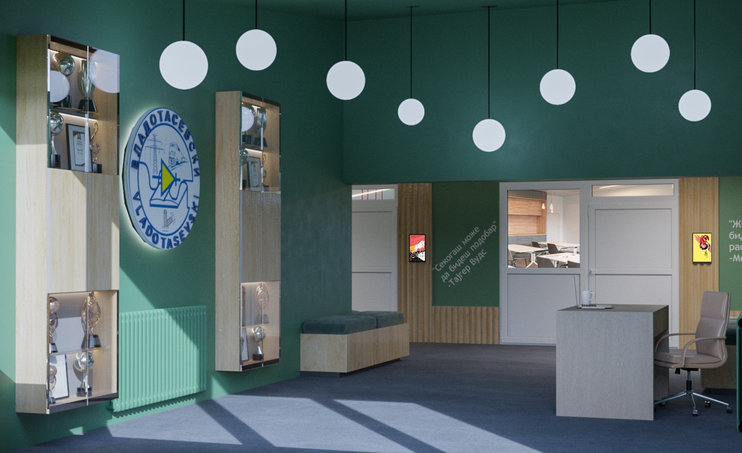 A well-designed interior in a high school has a much greater meaning than just aesthetics. Quality-decorated common premises play a major role in the development of students, encourage productivity and develop creativity. The students of high school “Vlado Talevski” in Skopje spend most of the day in these premises, so it is no coincidence that they have a great impact on their well-being and health.