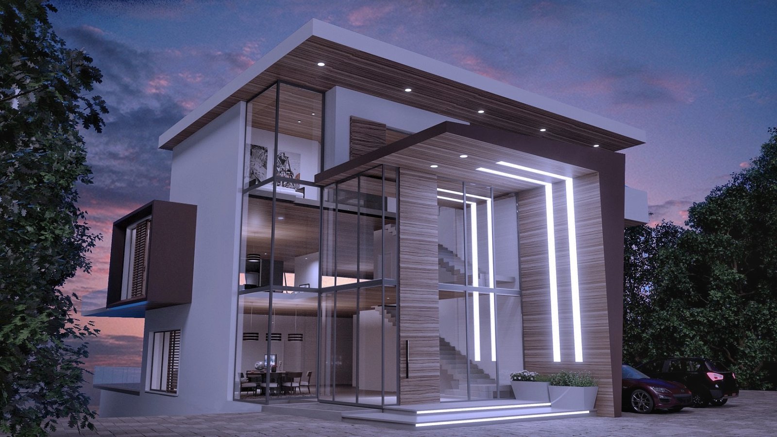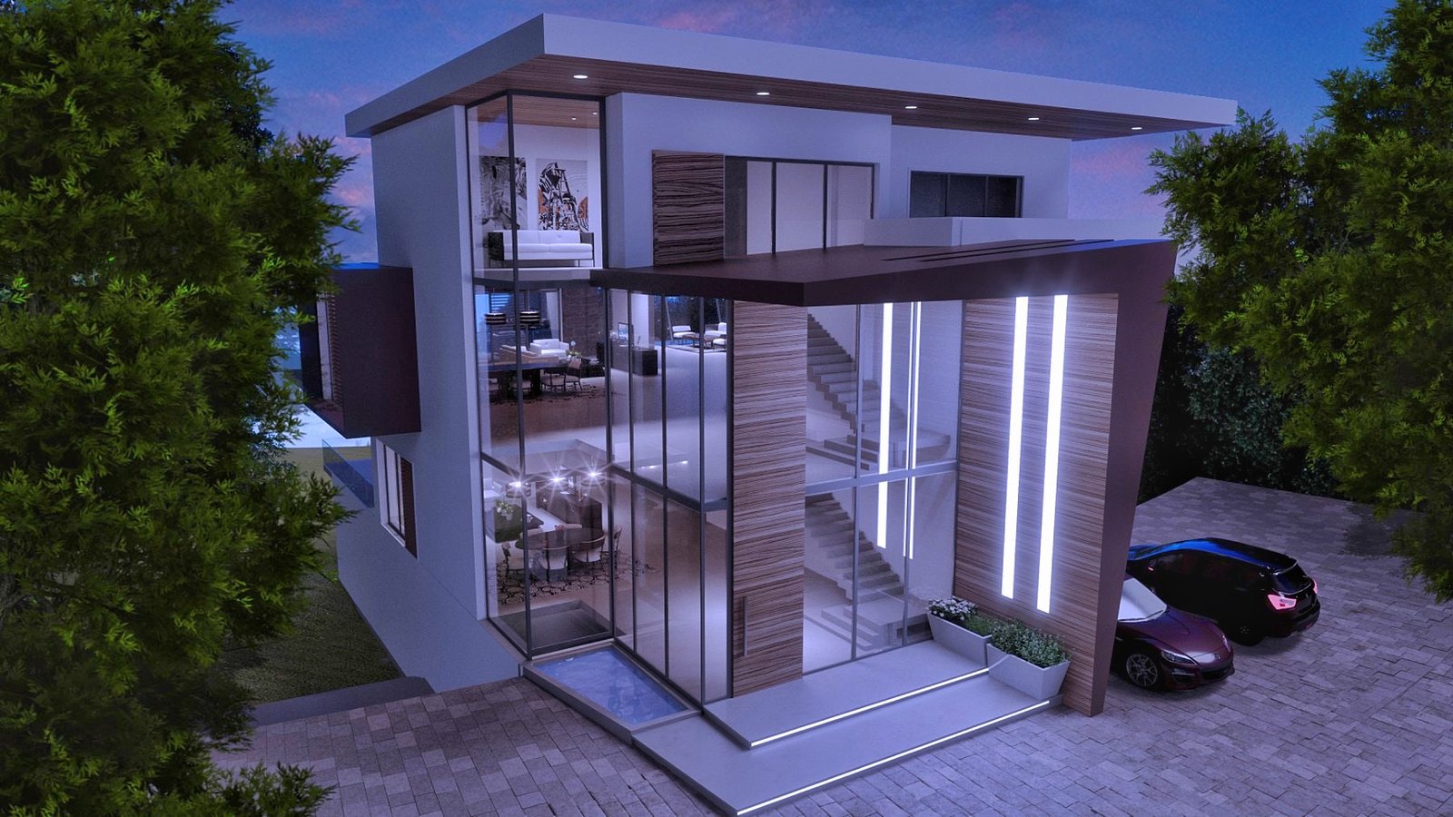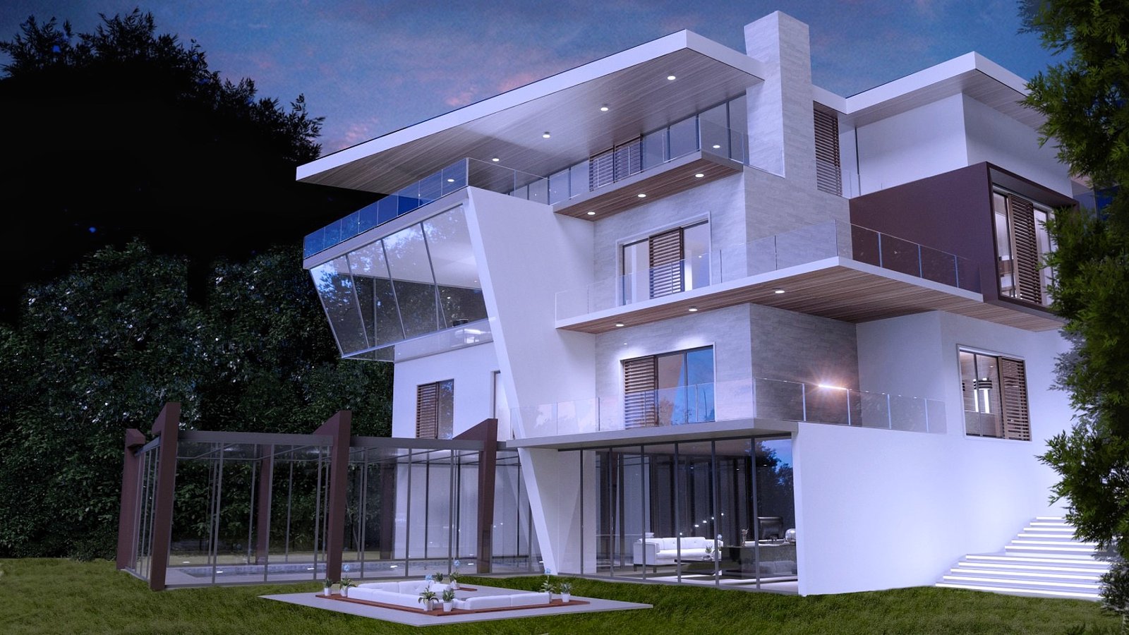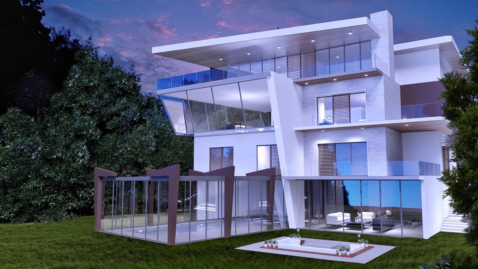 Circa 1400 m2 organized on four floors. On the lowest level there is a spa, fitness, recreation and entertainment area, open kitchen with dining room, wine cellar, basement and technical facilities. There is also a swimming pool covered with glass walls and ceilings. They are easily movable and during the summer months it converts into an open swimming pool. From there , a glass elevator with great look of the city takes to the next three levels. A special emphasis is placed on the third level where the living room is placed in a glass prism with a glass floor that overlooks the courtyard and the pool. The master bedroom with a large bathroom and a walk in closet are on the upper level. Big open terrace infront provides intimacy. A prominent entrance, glass walls, a huge open terrace overlooking the city and natural materials are just a few of the details that make this house so unique.